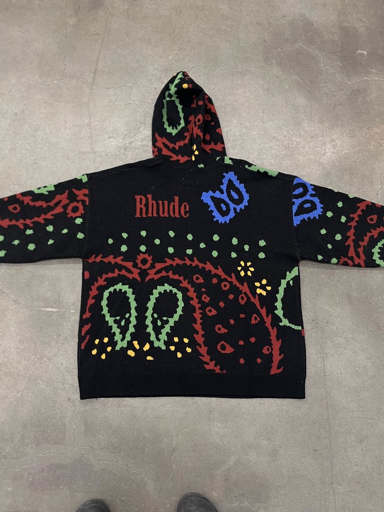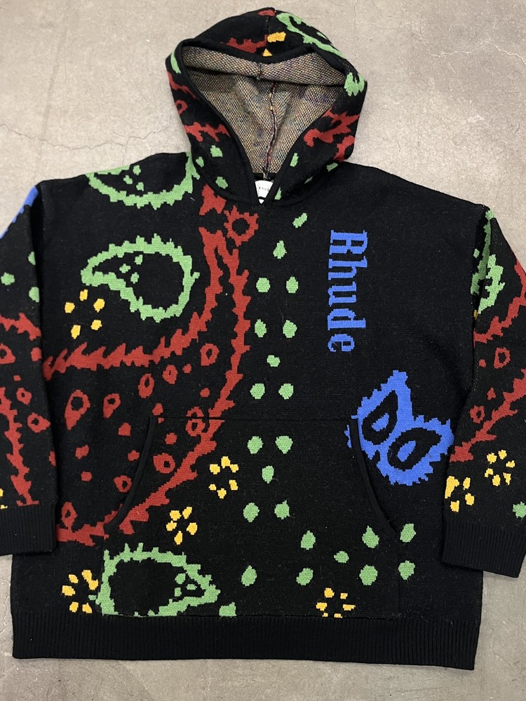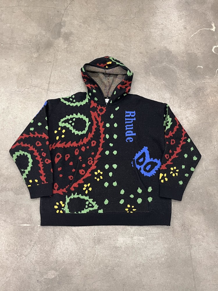 반다나 패턴의 니트 후드이고 적당히 신축성 있습니다.