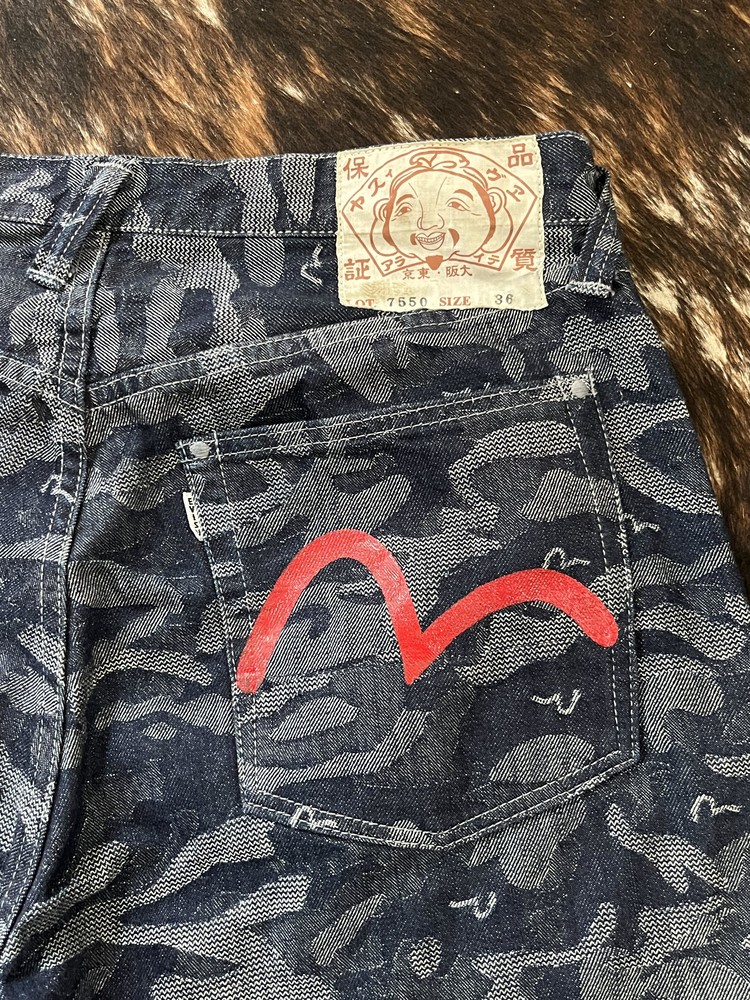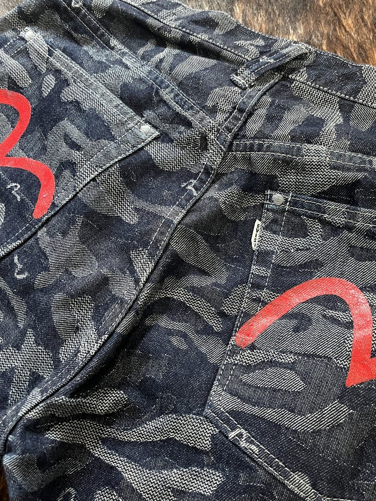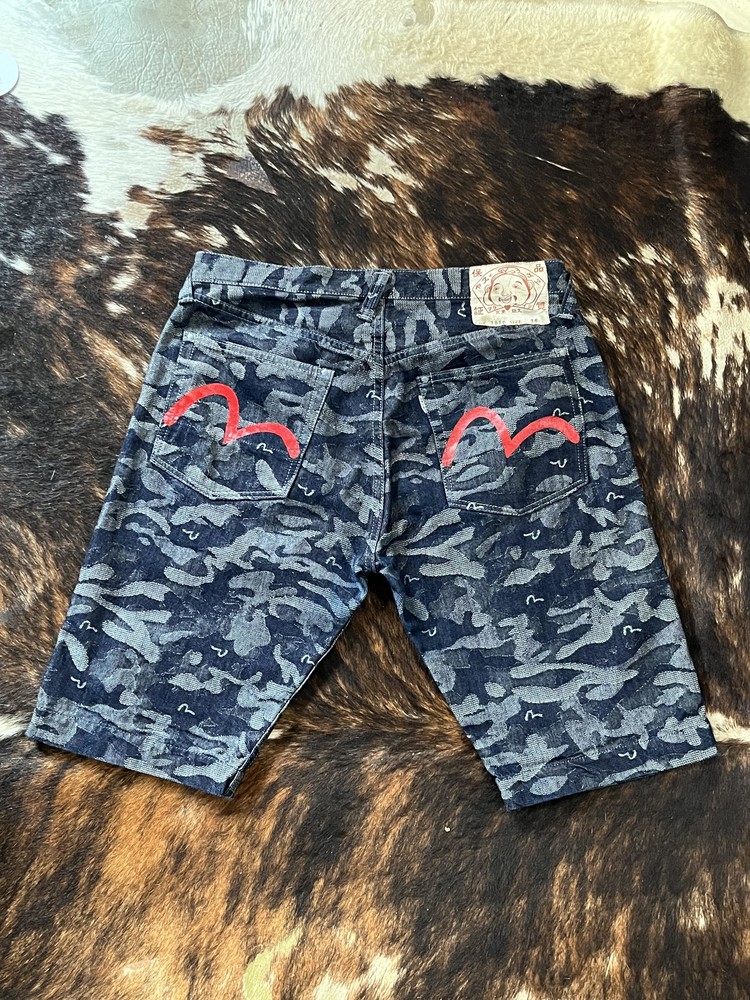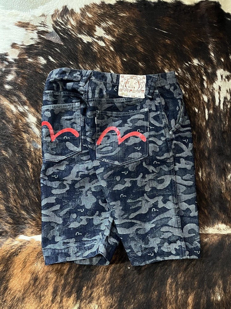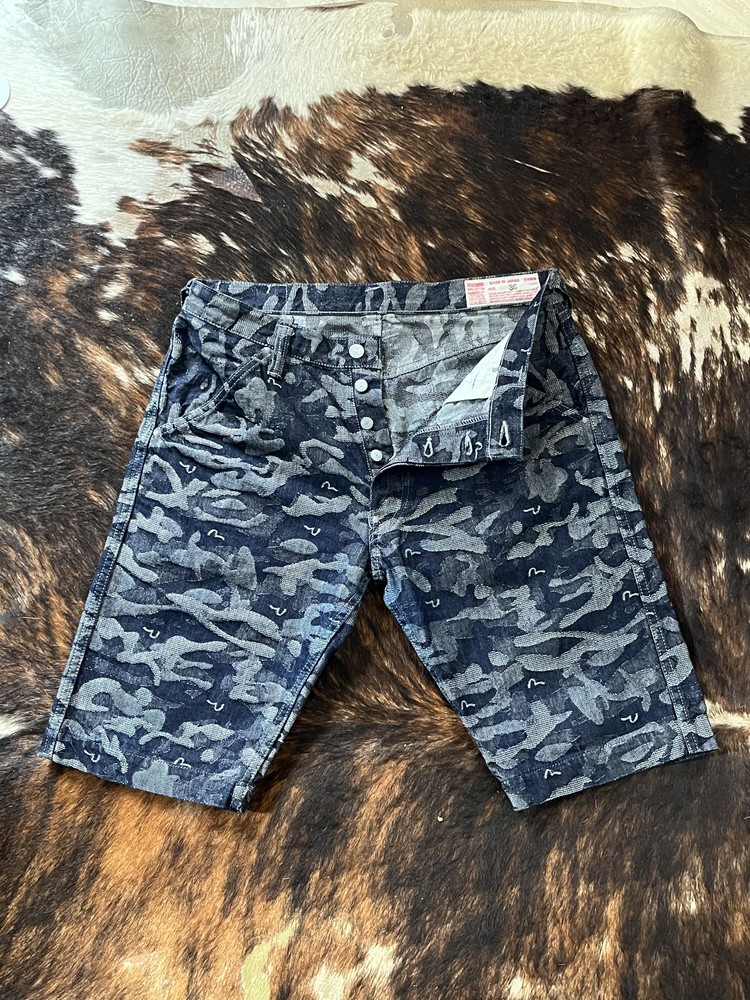 EVISU CAMOUFLAGE DENIM SHORTS (34)