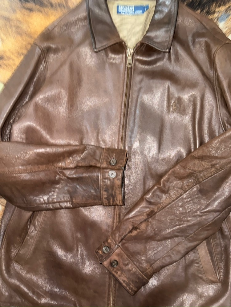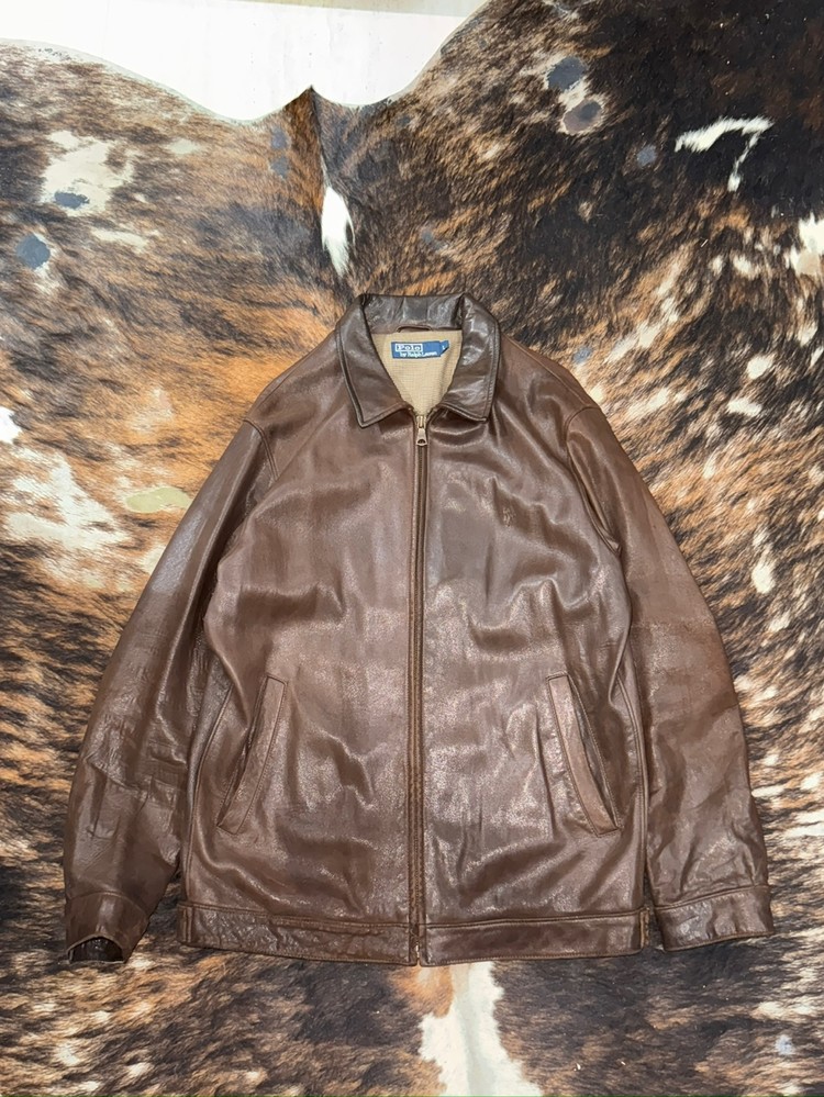 어린 양 가죽으로 만든 폴로 맥스웰 레더 자켓입니다.