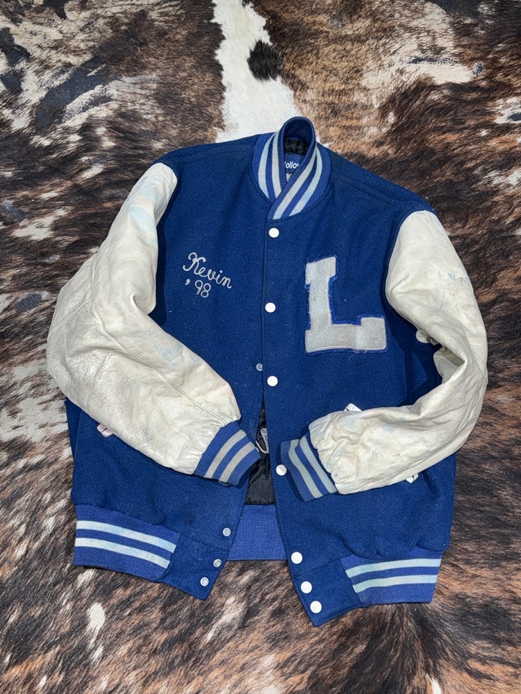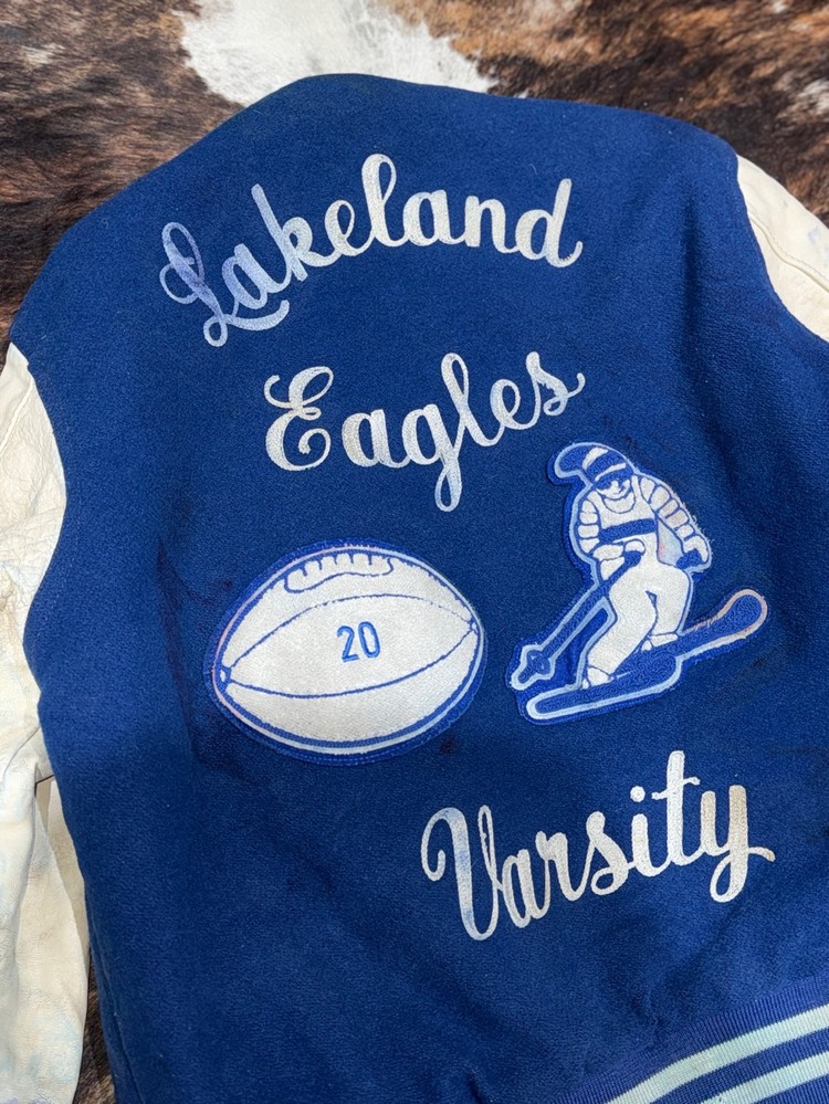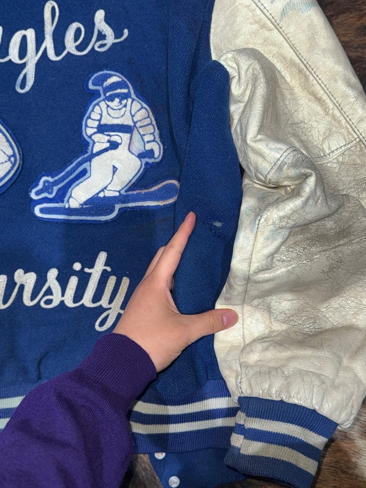 색상도 햇빛에 바랜 파란색이라 빈티지 바시티 자켓 구하시는 분들에게 수요가 높습니다.