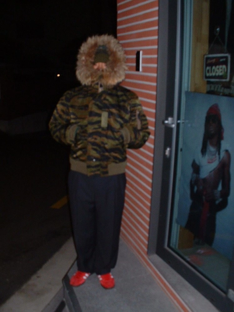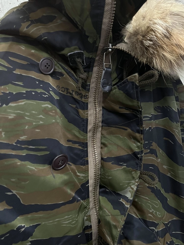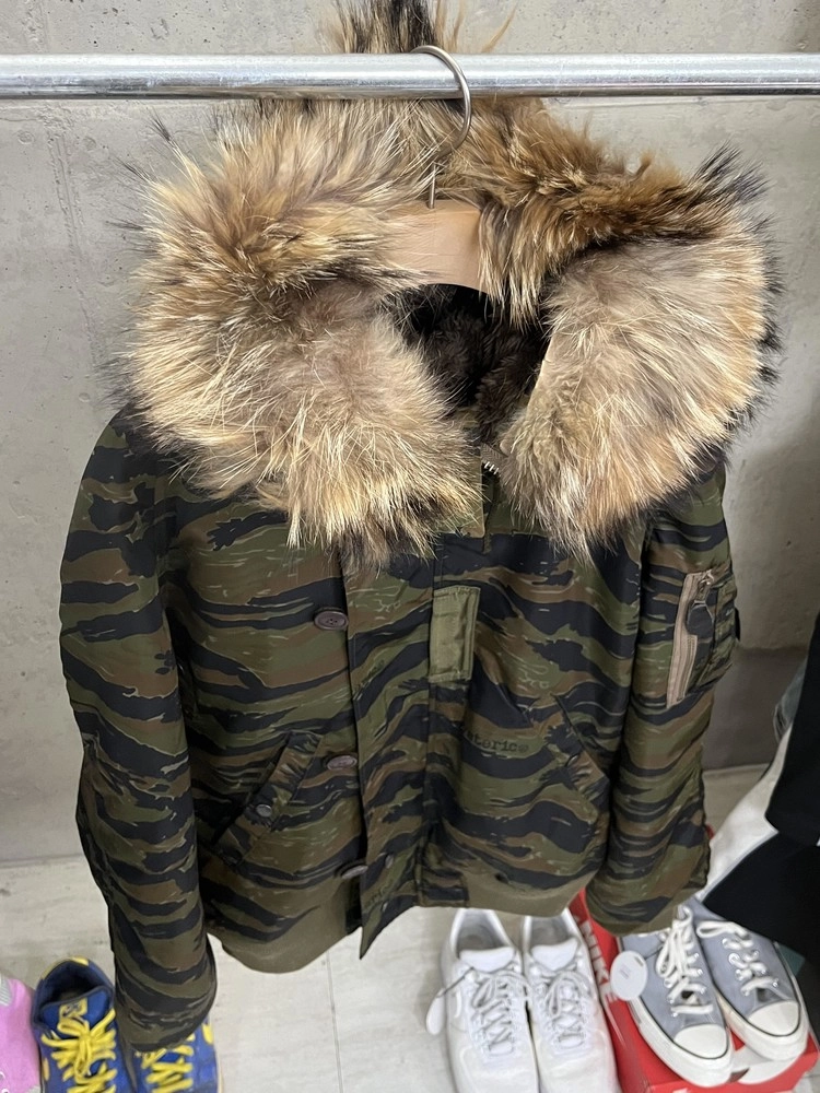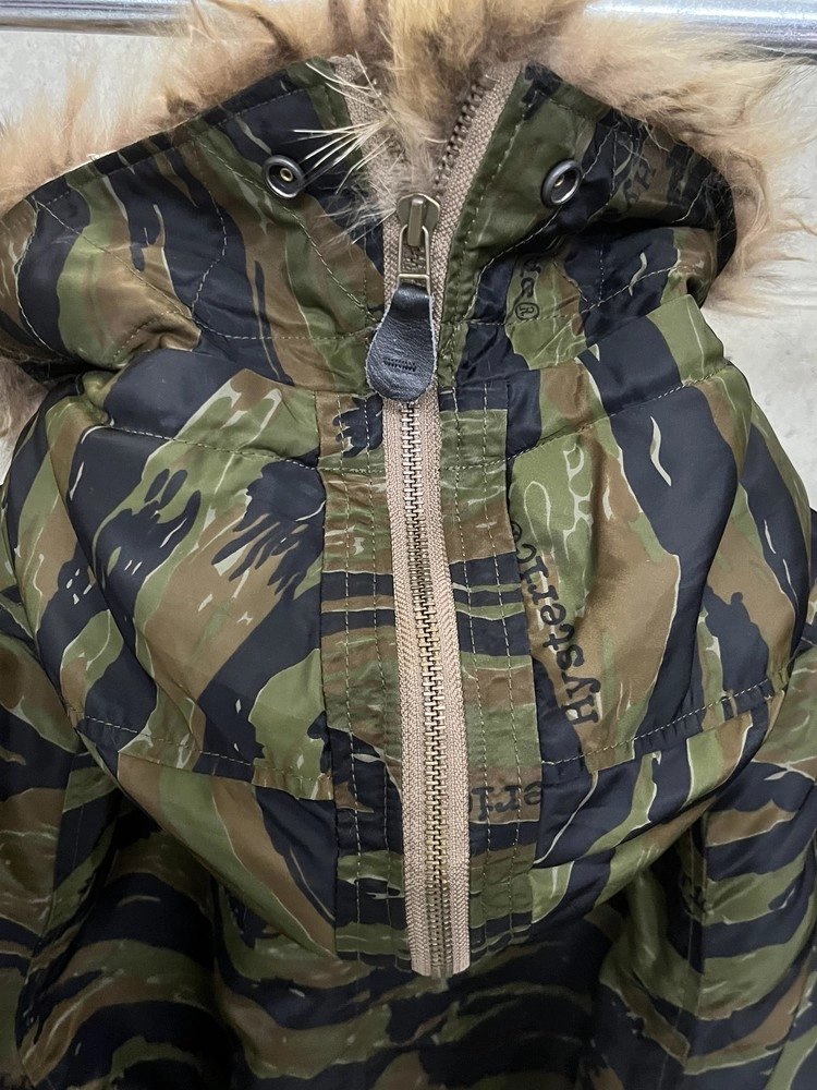 타이거 카모 패턴에 히스테릭 로고가 은은하게 숨어있습니다.